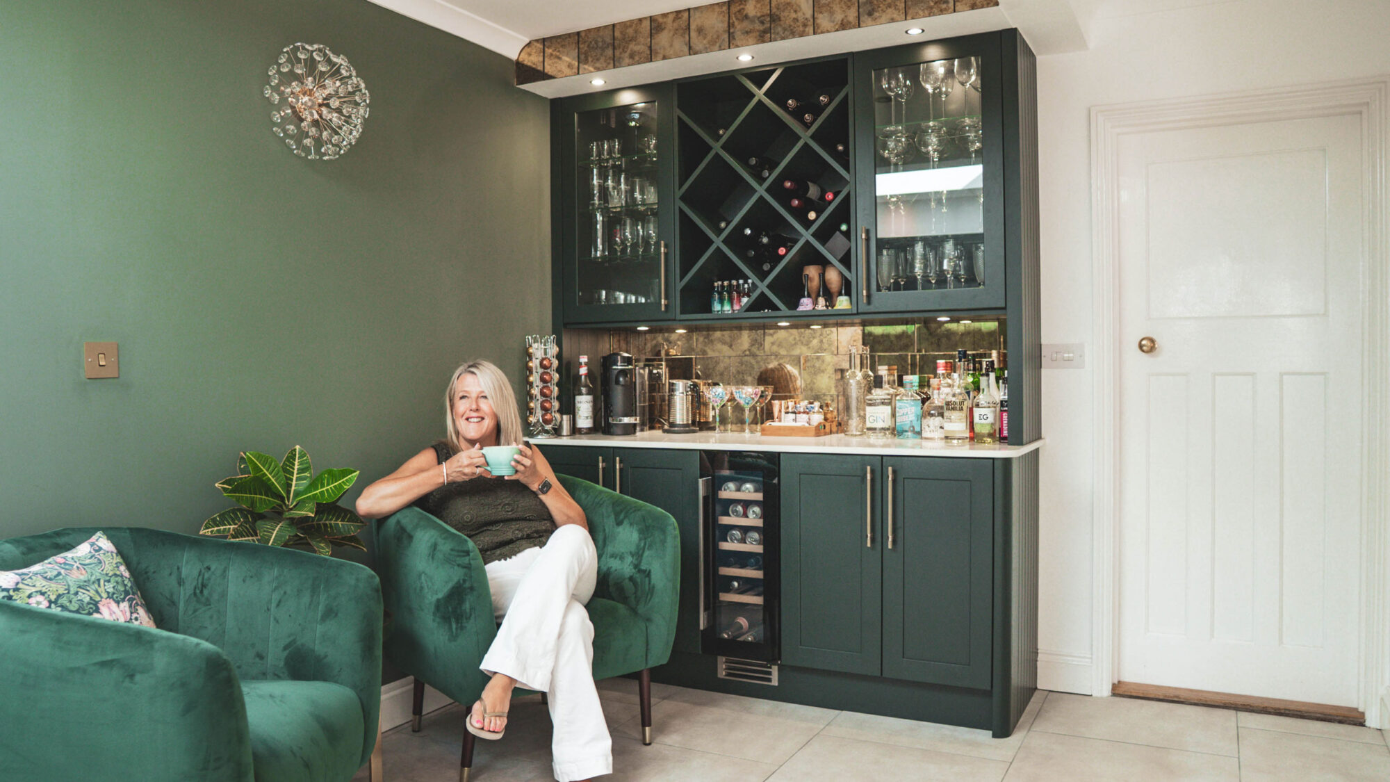 We designed the bespoke bar area to seamlessly integrate into the kitchen and living space, and the result is a space that feels both personal and timeless.
