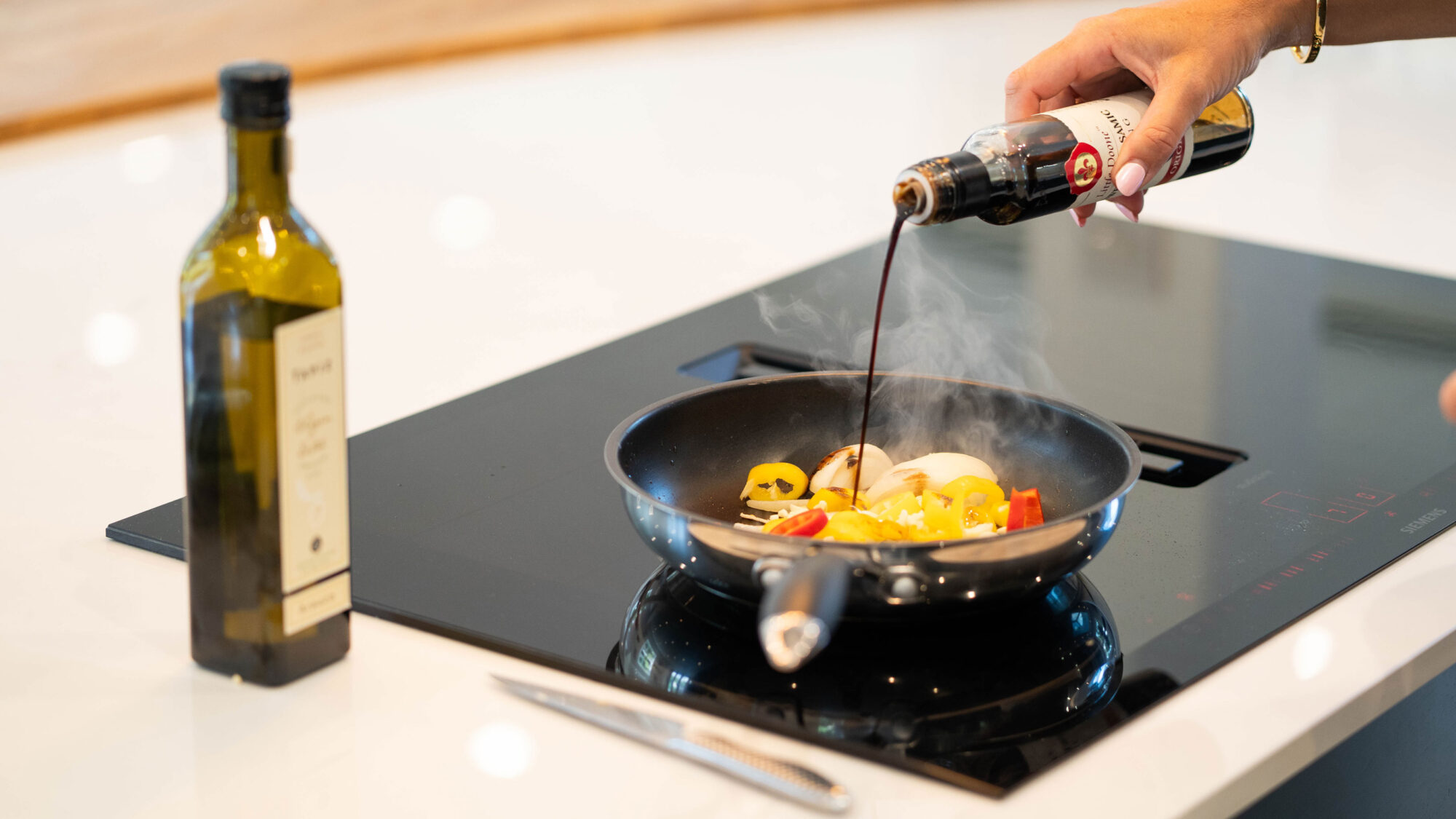 At the heart of the kitchen is the island, featuring an integrated venting hob and our signature teardrop timber breakfast bar. It adds warmth to the space, and is a natural place to perch with a glass of wine, share conversation or unwind at the end of the day.