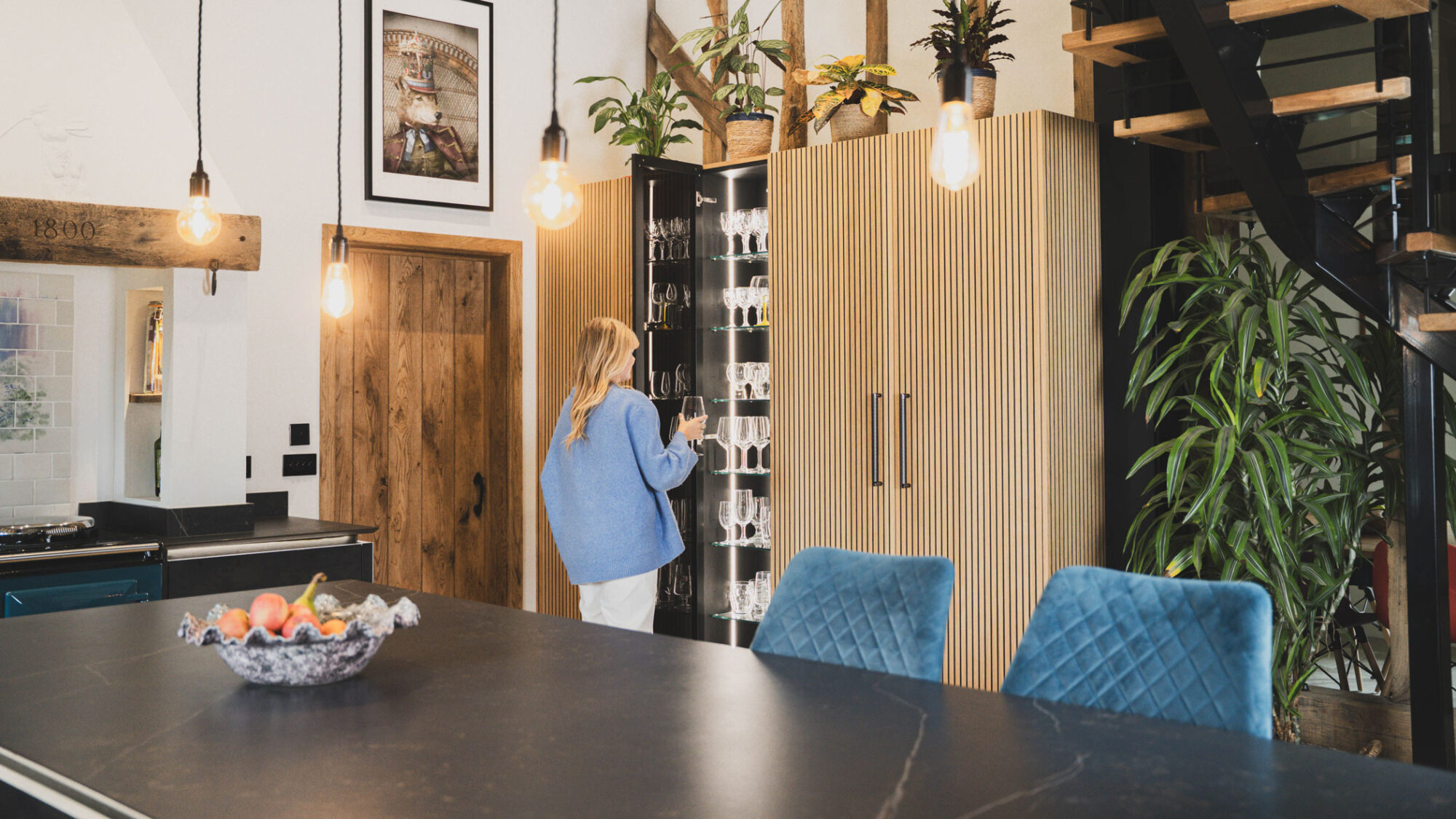 At the heart of our design we used fluted oak wood panelling paired with a sleek black glass unit to create a bold focal wall, one that balanced texture and depth with simplicity. Clean lines and a dark colour palette are elevated by the natural wood accents and subtle contrasts, to offer a sense of calm and cohesion.